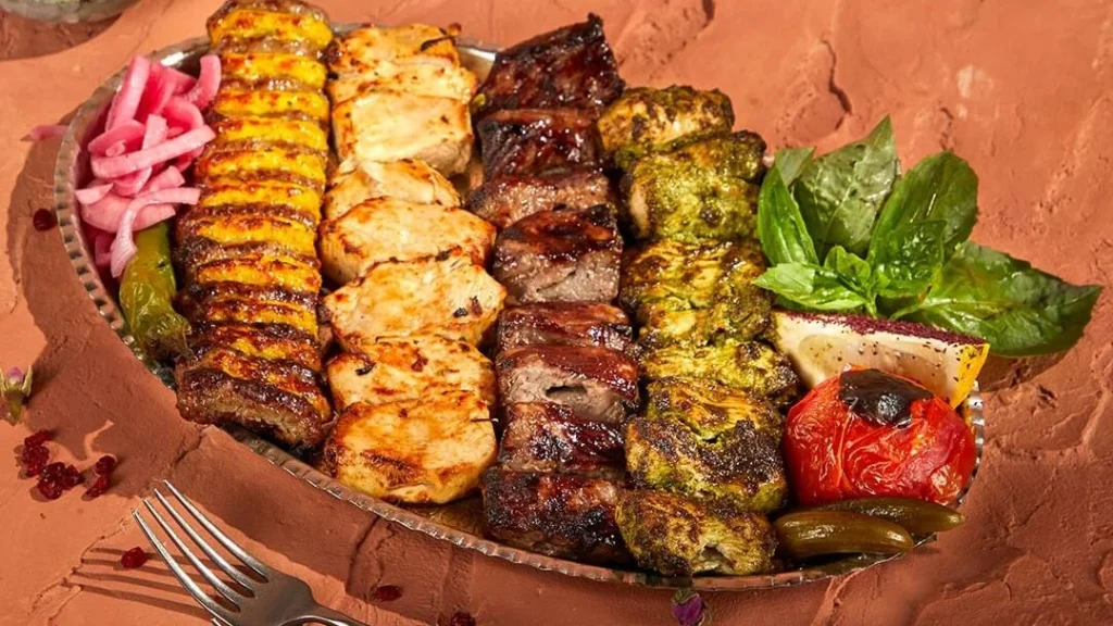 استمتع بتجربة طعام فارسية سحرية مع الأطباق الأصيلة مثل سلطة شيرازي، وآش ريشتي، وغورمي سابزي. تلذذ بالكباب المشوي بخبرة مثل كوبيدة كباب وشيشليك كباب، واختم الوجبة بالحلويات اللذيذة مثل شوله زرد وبستاني.