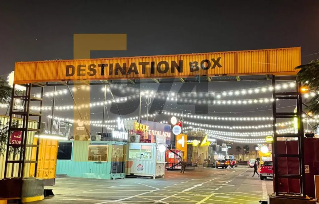 يتميز دستينشن بوكس بوجود حاويات ملونة للمطاعم والمقاهي المحلية الشهيرة. كما يحتوي على شوارع يمكنك القيادة خلالها أو ركن السيارة للاستمتاع بتناول الطعام.