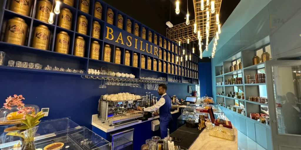 يقدم باسيلور لاونج حلويات مثل بودنغ التمر المجدول والتيراميسو، وسلطات صحية مثل سلطة الأفوكادو والكينوا وسلطة سيزر بالدجاج. تشمل المشروبات المميزة مثل روز فانتاسي وباشن تروبيكا، إلى جانب مشروبات باردة مثل لوتس بيسكوف وموهيتو التوت الأزرق والشاي الساخن.