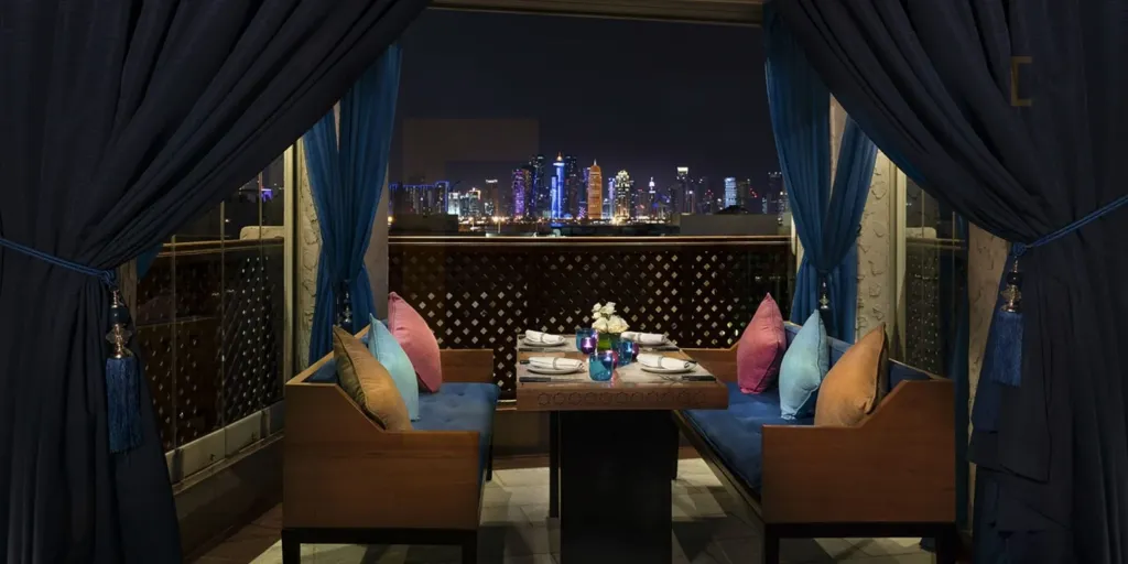 يقدم مطعم الشرفة مأكولات شرق أوسطية مع فرصة للاستمتاع بإطلالات خلابة على أفق مدينة الدوحة.